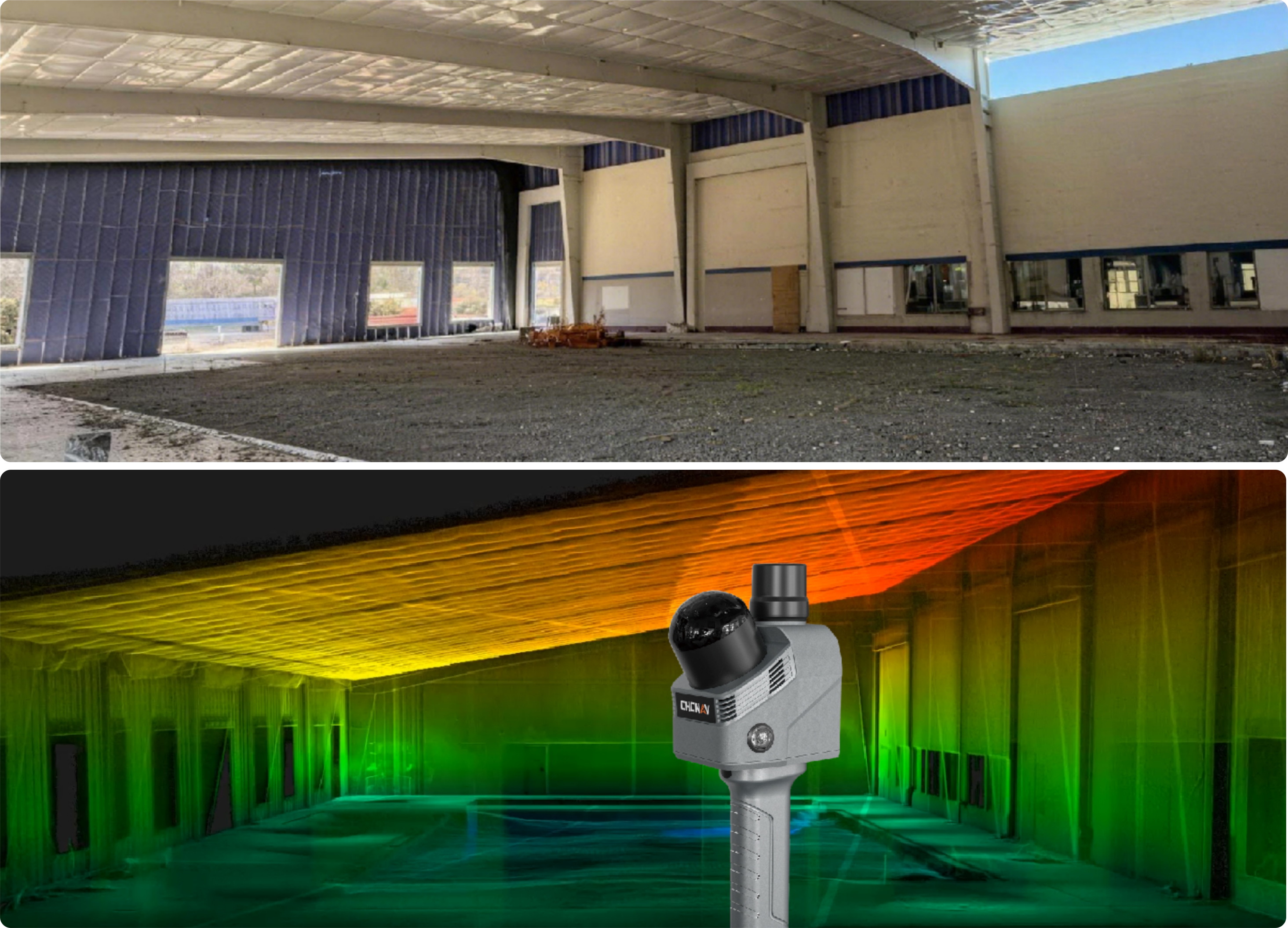 captures the floor below and ceiling above simultaneously